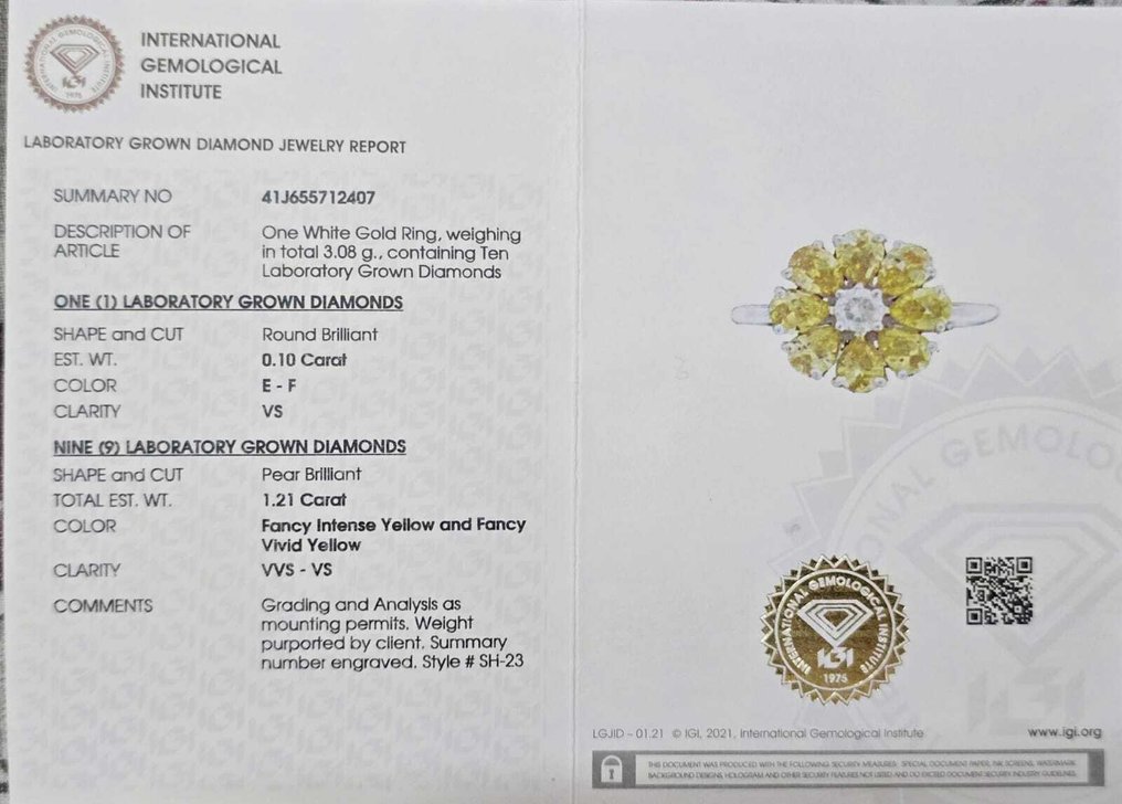 IGI certified Lab grown diamond flower ring in white gold with IGI certificate